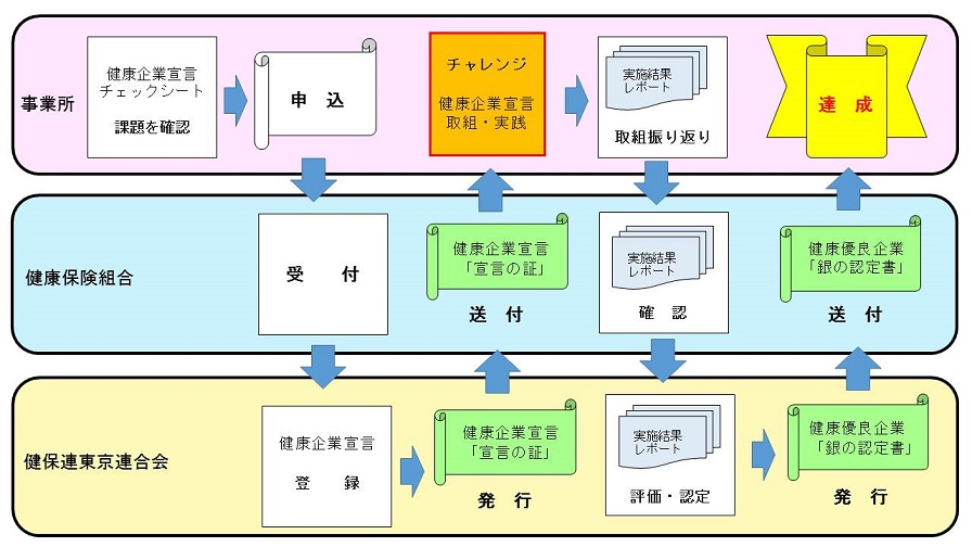 - 健康企業宣言取り組み事業所として登録され、健康保険組合連合会東京連合会より「健康企業宣言 宣言証」が発行されます。